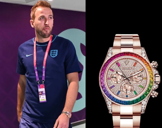 A descoberta foi divulgada nesta semana por um perfil no Instagram que destaca artigos de luxo utilizados por personalidades do esporte. O perfil Insane Luxury publicou que Harry Kane utilizava um Rolex Daytona "Rainbow" 116595RBOW com 18 quilates de ouro rosa, por isso o preço exorbitante.