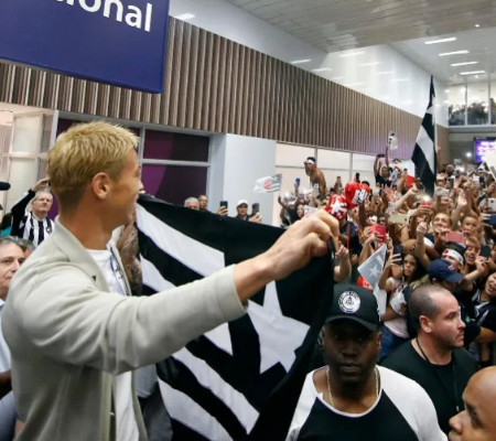 A tarde foi de festa para a torcida do Botafogo. Isso porque a sexta-feira (07) foi reservada para recepcionar o mais novo reforço do clube, Keisuke Honda. O japonês desembarcou no Rio de Janeiro perto das 17h (de Brasília) em um aeroporto abarrotado em preto e branco. As informações são do Esporte Interativo.