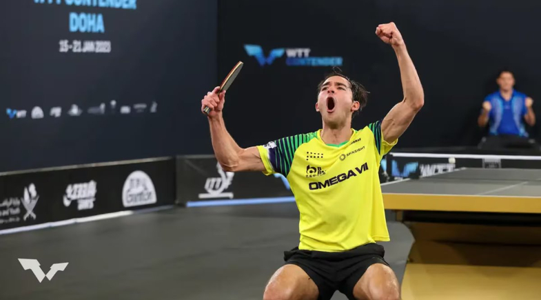 Em ótima fase, o brasileiro Hugo Calderano avançou à semifinal do WTT Champions de Macau, na China, após vitória sobre o alemão Patrick Franziska por 4 sets a 2 (13/11, 9/11, 11/9, 11/3, 4/11, 11/8) em 52 minutos.