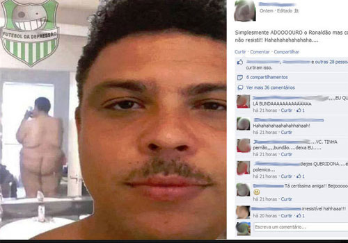 Claro que a foto é montagem, mas nem por isso, ela deixa de ser engraçada. O pessoal sempre pega pesado quando o assunto é Ronaldo, né?