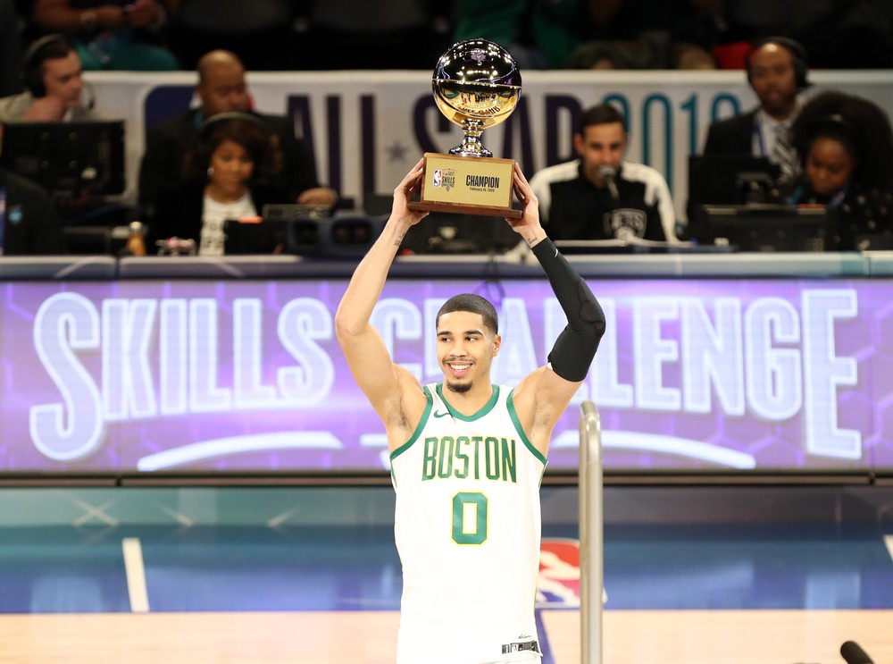 No desafio, o jogador precisava passar por obstáculos quicando a bola e dar um passe reto em um alvo posicionado de um lado da quadra. Segue para outro, faz uma bandeja e volta para acertar o arremesso de três. Como Young estava bem à frente, Tatum apostou na pontaria de longe para vencer o duelo.