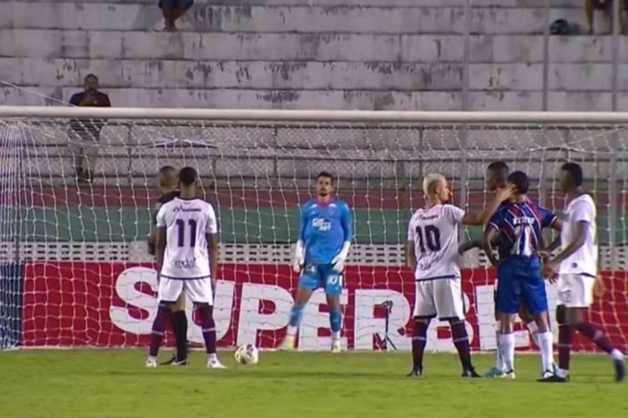 A goleada do Bahia por 5 a 0 sobre a Jacuipense, no último domingo (9), pela semifinal do Campeonato Baiano, ficou marcada por um lance inusitado. O meia Matheus Firmino, da Jacuipense, foi expulso ainda no primeiro tempo após dar um peteleco na orelha de Rodrigo Nestor, do Tricolor. O VAR revisou o lance, e o árbitro Eziquiel Sousa Costa aplicou o cartão vermelho direto.