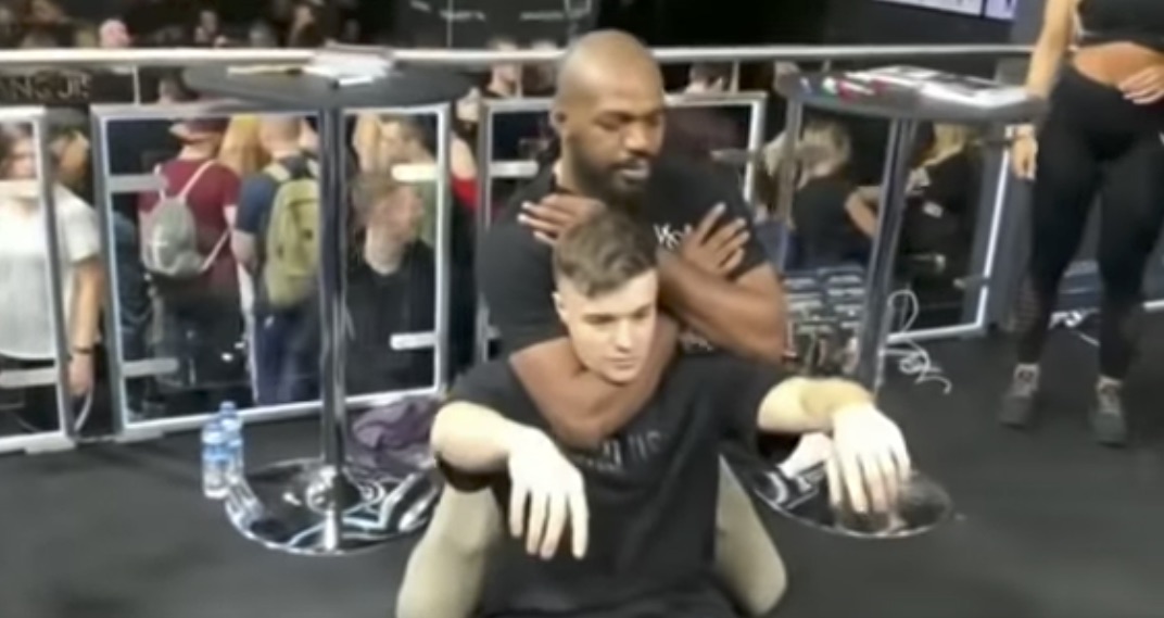 De acordo com o site “Sportbible”, próprio fã pediu para Jon Jones colocá-lo para dormir, e o campeão do UFC aceitou sua oferta. O rapaz foi rapidamente nocauteado.