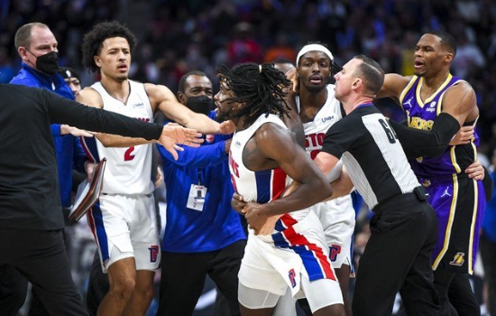 Com o rosto sangrando, na região do olho direito, Isaiah Stewart ficou revoltado, tentou revidar e foi contido por companheiros de equipe, que tentavam acalmar os ânimos. Quando a situação parecia controlada, o jogador da franquia do Michigan tentou encontrar LeBron novamente e foi conduzido para fora da quadra.
