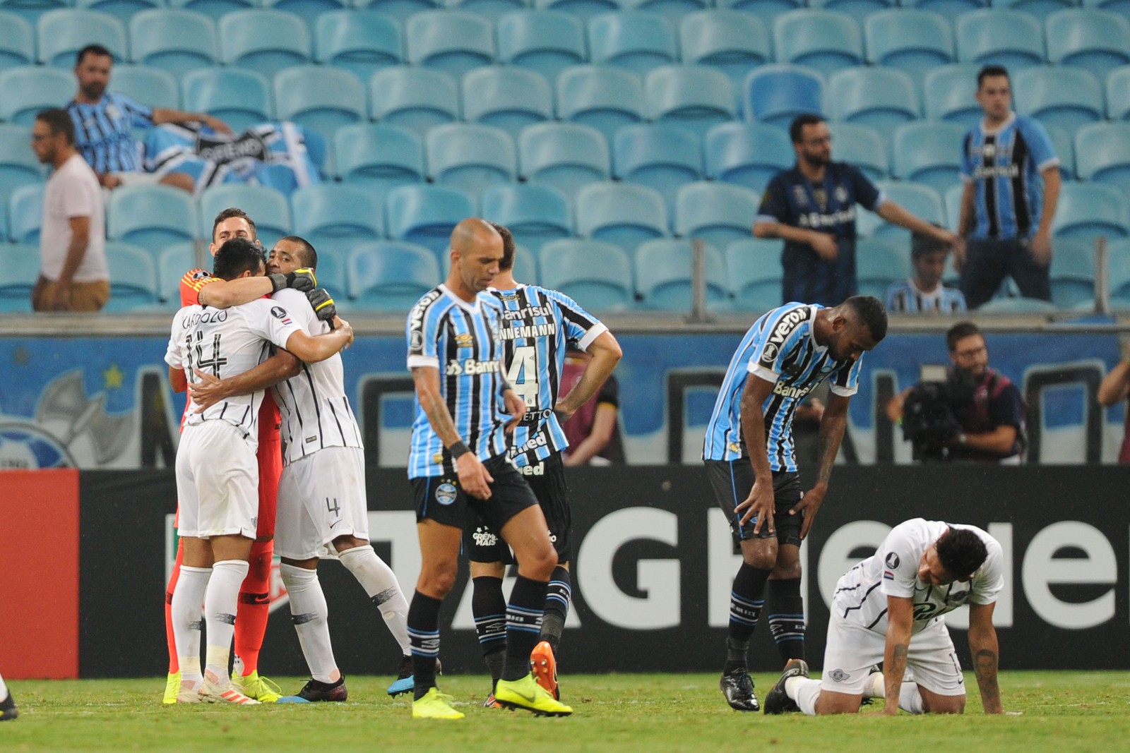 Apesar da pressão desorganizada, o Grêmio ouviu vaias após o apito final. A atuação ruim gerou uma cobrança da torcida no estádio e uma situação complicada na tabela. Dependendo do resultado do duelo entre Universidad de Chile e Rosario Central, nesta quarta-feira, a classificação precisará de pitadas de heroísmo a partir de agora. Em caso de vitória dos argentinos, o Grêmio fica três pontos atrás e a cinco dos paraguaios.