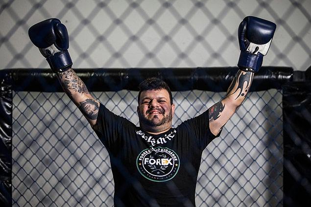 Armando Coelho de Souza, 38, superou o câncer, tratamento de quimioterapia e cirurgia na qual retirou cerca de trinta centímetros do intestino para retornar à arena de MMA (artes marciais mistas), hoje, no Circuito Talent, em Osasco, em São Paulo.
