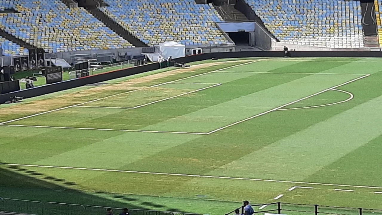 O Maracanã é o principal palco do futebol carioca, nesta quarta-feira (27), recebe a partida entre Fluminense e Internacional, pela semifinal da Libertadores da América. O campo não está apresentando boas condições, na parte que fica um dos gols, na parte esquerda do gramado. Atrás da linha de fundo, que fica no setor norte do estádio, apresenta falhas.