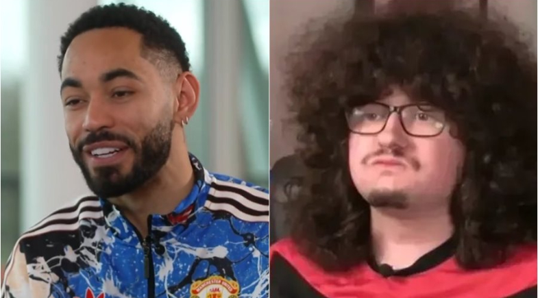 Matheus Cunha e Torcedor do United | Foto: Reprodução/DAZN e Reprodução/TheUnitedStrand