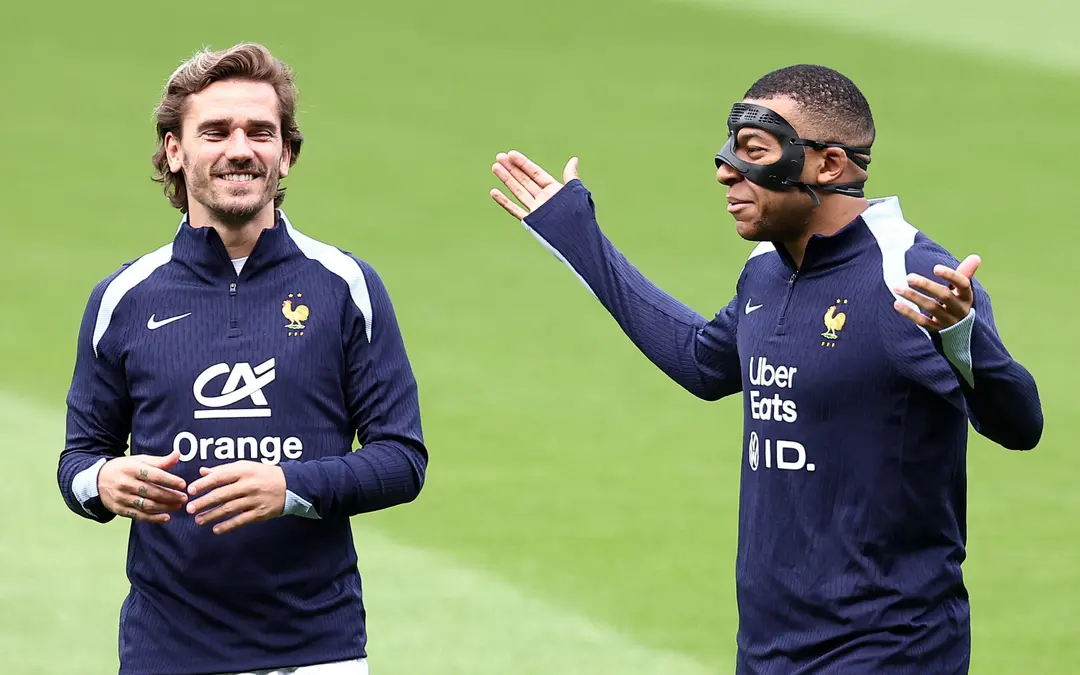 Mbappé usou a mesma máscara do treino anterior, toda preta e com aberturas para ventilação. No sábado passado, também com a proteção no rosto, o atacante jogou 60 minutos de um jogo-treino fechado contra o time sub-21 do Paderborn. Segundo o jornal francês "L'Équipe", o departamento médico da França está agindo com cautela para evitar apressar o retorno do craque e comprometer sua participação na fase de mata-mata da Euro.