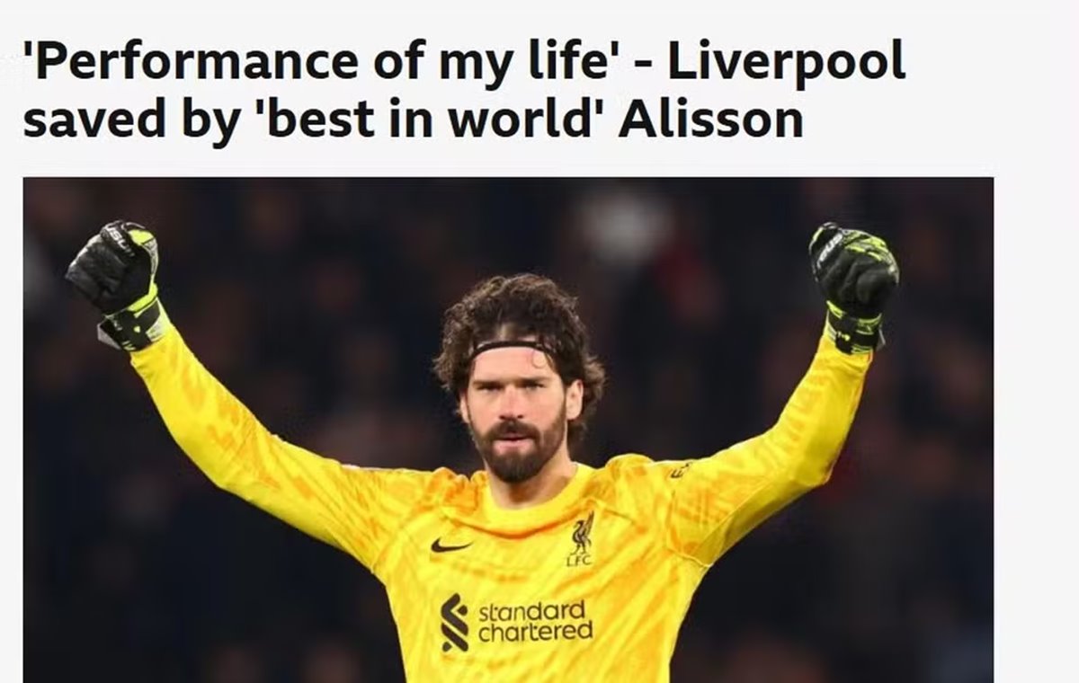 A atuação de Alisson foi amplamente elogiada pela mídia internacional. O "Mirror" afirmou que ele fez “o jogo da sua vida”, enquanto a "BBC Sport" o classificou como o melhor do mundo. O "Daily Mail" destacou que o Liverpool “sobreviveu graças ao brilhantismo do brasileiro”, e o "The Athletic" o chamou de “herói” da partida.