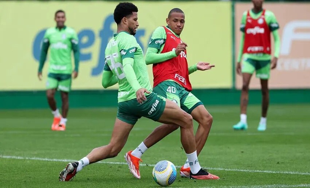 A possível escalação do Palmeiras para o jogo contra o Corinthians tem: Weverton; Marcos Rocha (Mayke), Naves, Murilo (Vitor Reis) e Piquerez; Zé Rafael, Fabinho e Raphael Veiga; Estêvão, Flaco López e Gabriel Menino.