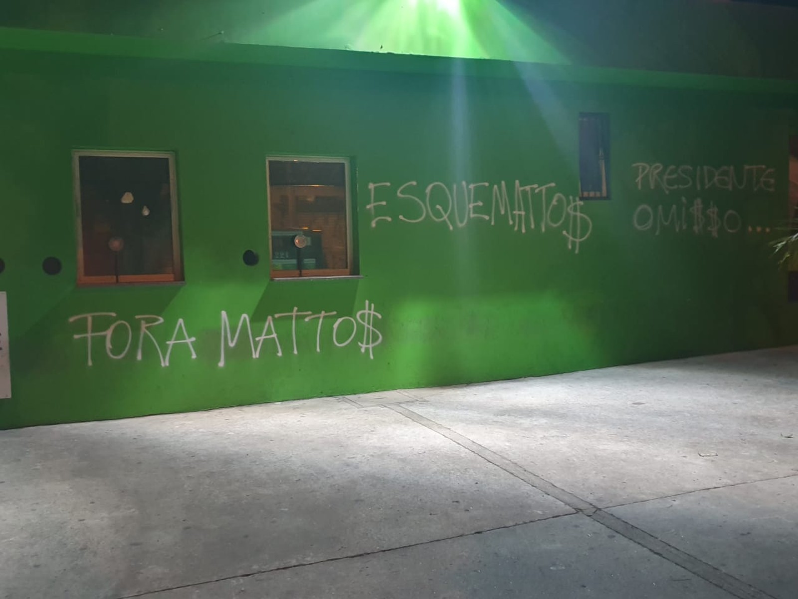 Os muros da sede social do Palmeiras foram pichados durante a madrugada deste sábado. O presidente Mauricio Galiotte e o diretor de futebol Alexandre Mattos eram os alvos da ação dos vândalos. O clube, no entanto, agiu rápido e cobriu as mensagens logo no início da manhã, pintando de verde escuro sobre as pichações.