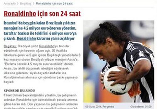 O FotoMac e o Fanatik, esse último um jornal esportivo turco, ainda detalham que dirigentes da alta cúpula do Besiktas se reuniram na noite desta quarta-feira, em um restaurante de Istambul, para selar um acordo com patrocinadores, que ajudariam a bancar financeiramente a venda de Ronaldinho.