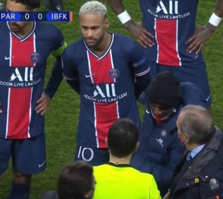 A situação ocorreu aos 16 minutos do primeiro tempo, quando o atacante Demba Ba, do Basaksehir, reclamou de uma possível ofensa pelo juíz. Neymar, então, conversou com o atacante e, após saber o ocorrido, fez gestos para os companheiros deixarem o gramado.