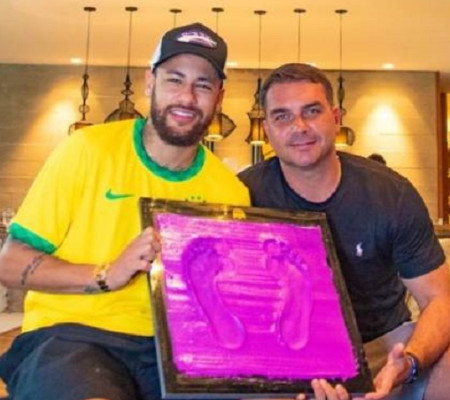 Neymar e o senador Flávio Bolsonaro- Foto: Reprodução/Instagram O craque do PSG tirou a foto ao encontrar o senador numa gravação da calçada de homenagens do Maracanã ao lado de outros jogadores que fizeram sucesso no esporte.