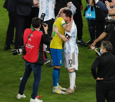 Consolado por companheiros, Neymar chegou a se ajoelhar perto do meio do gramado do Maracanã enquanto os argentinos comemoravam a vitória. Depois do choro, Neymar abraçou Lionel Messi. Os dois jogadores atuaram juntos no Barcelona de 2013 a 2017.