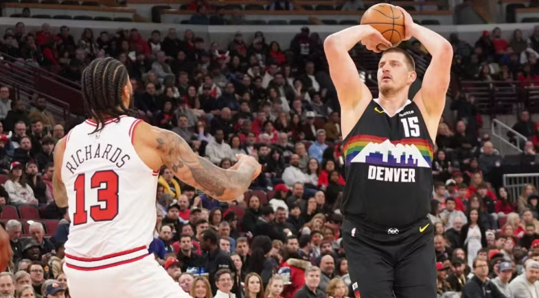 O Denver Nuggets venceu o Chicago Bulls por 136 a 120, com Jokic anotando 22 pontos, 14 rebotes e 14 assistências, liderando sua equipe com uma atuação completa e dominante.