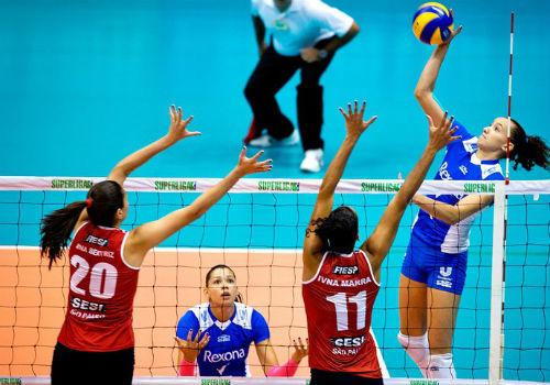 Sesi-SP: Dani Lins, Ivna, Dayse, Suelle, Fabiana e Bia. Líbero - Suelen