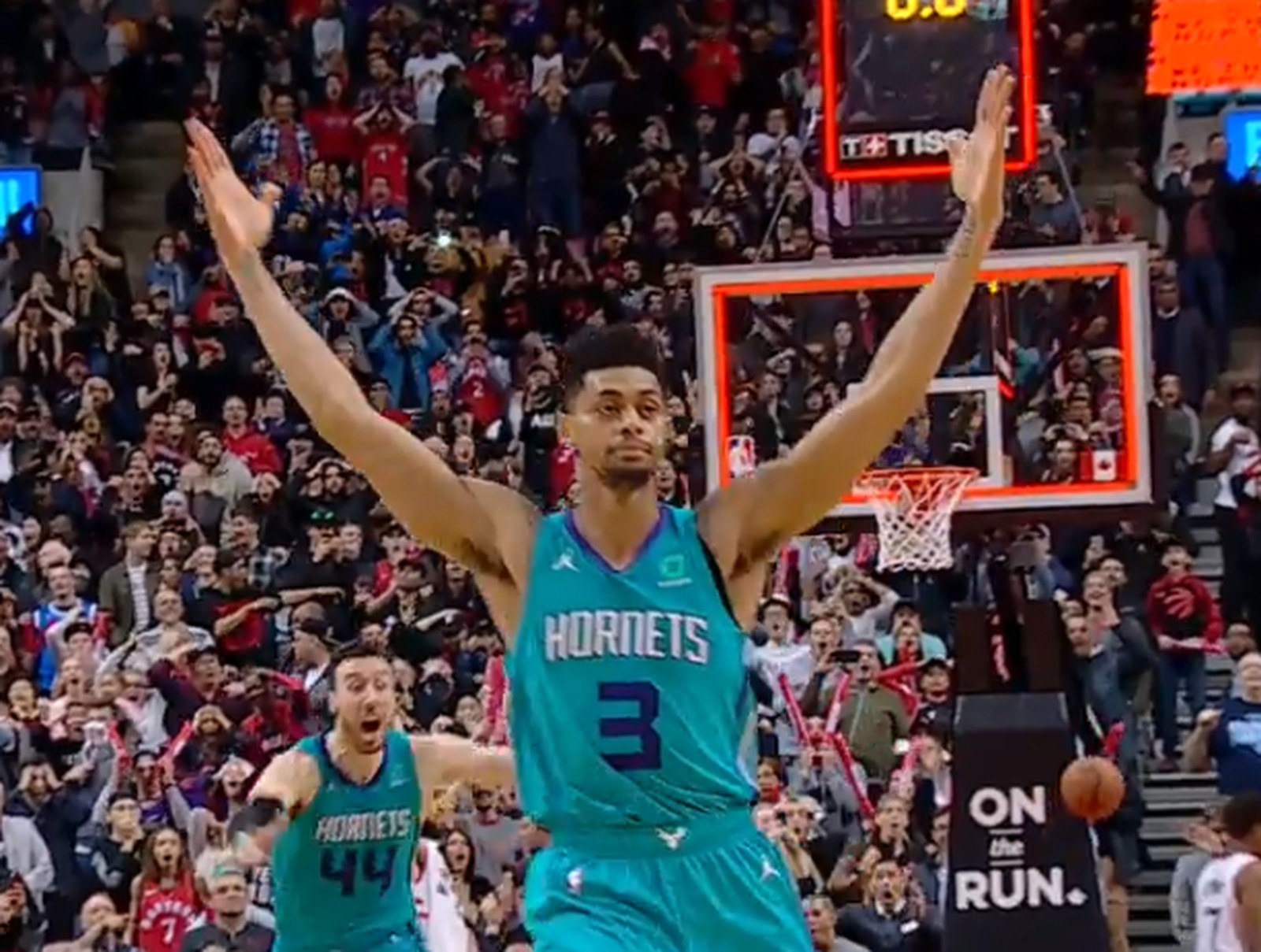 Mas talvez a cravada da noite tenha sido mesmo de Miles Bridges, na vitória dos Hornets sobre os Raptors.