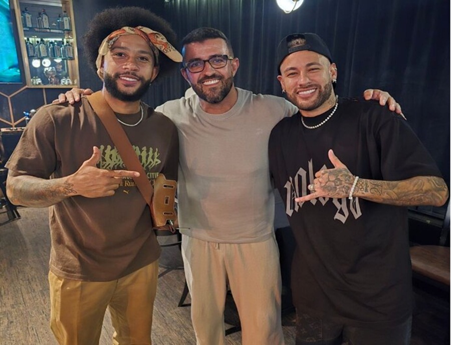 Neste domingo (1º), Neymar e Memphis Depay, dois dos maiores nomes do futebol mundial, se encontraram em São Paulo. Neymar, que está se recuperando de uma lesão muscular, segue com seu tratamento na capital paulista. O encontro foi registrado e compartilhado pelo empresário e embaixador de poker, André Akkari, que aparece na foto ao lado dos jogadores.