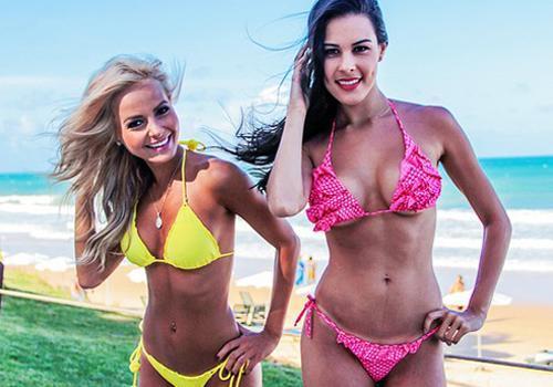 As octagon girls brasileiras Camila Oliveira e Jhenny Andrade têm sido atrações à parte na semana do UFC Fight Night no Combate: Shogun x Henderson 2. As beldades atenderam centenas de fãs ao lado dos lutadores Renan Barão, José Aldo e Gleison Tibau na quinta-feira e estarão no sábado e domingo desfilando de top e shortinho na pesagem e no evento. Na sexta-feira, a dupla deu uma prévia para o Combate.com do que mostrarão no fim de semana e posaram de biquíni na piscina do hotel do UFC em Natal, à beira da praia.