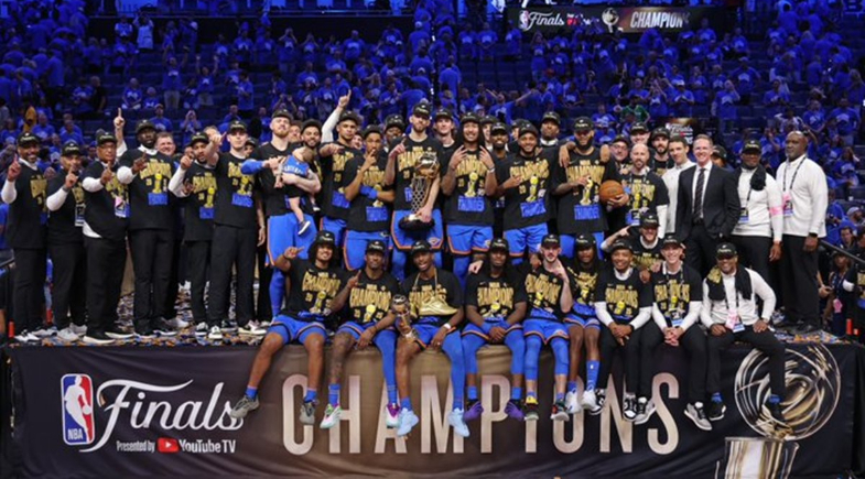Após 17 anos de espera, o Oklahoma City Thunder finalmente conquistou seu tão sonhado título da NBA. Diante de um Paycom Center lotado e tomado por camisas azuis e gritos de "OKC!", a equipe superou o resistente Indiana Pacers no jogo 7 das finais, vencendo por 103 a 91. O MVP da temporada 2024/25, Shai Gilgeous-Alexander, liderou o time ao lado de Jalen Williams e Chet Holmgren na conquista histórica.