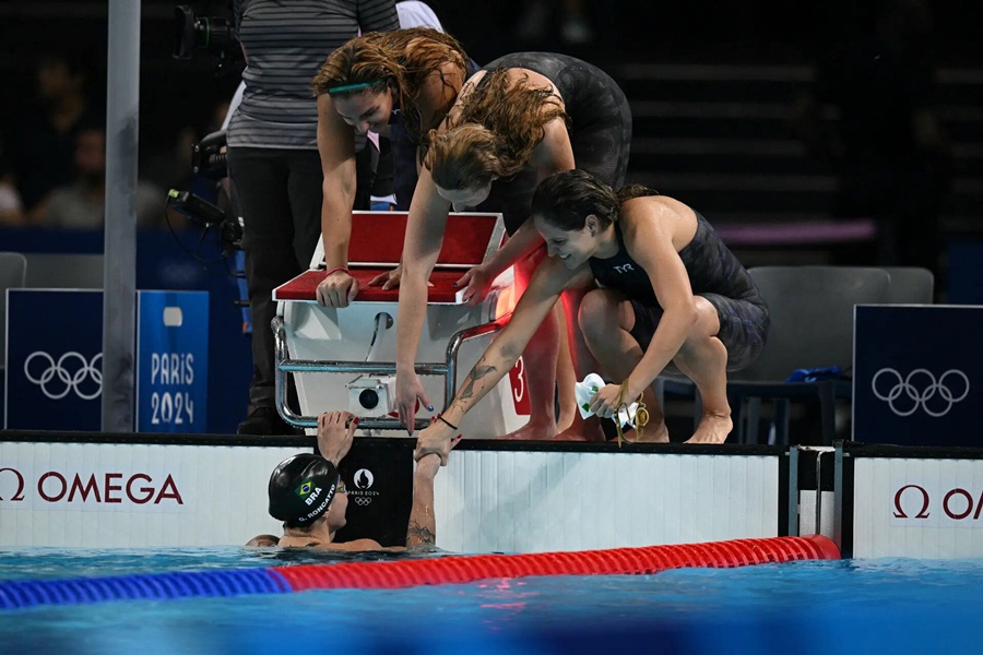 Nesta quinta-feira, o Time Brasil garantiu a vaga na final da prova de revezamento 4x200m feminino nos Jogos Olímpicos de Paris. A equipe foi representada por Maria Fernanda Costa, Stephanie Balduccini, Maria Paula Heitmann e Gabrielle Roncatto. Competindo na primeira bateria, as brasileiras registraram um tempo de 7:52.81, alcançando o quinto lugar na classificação geral.