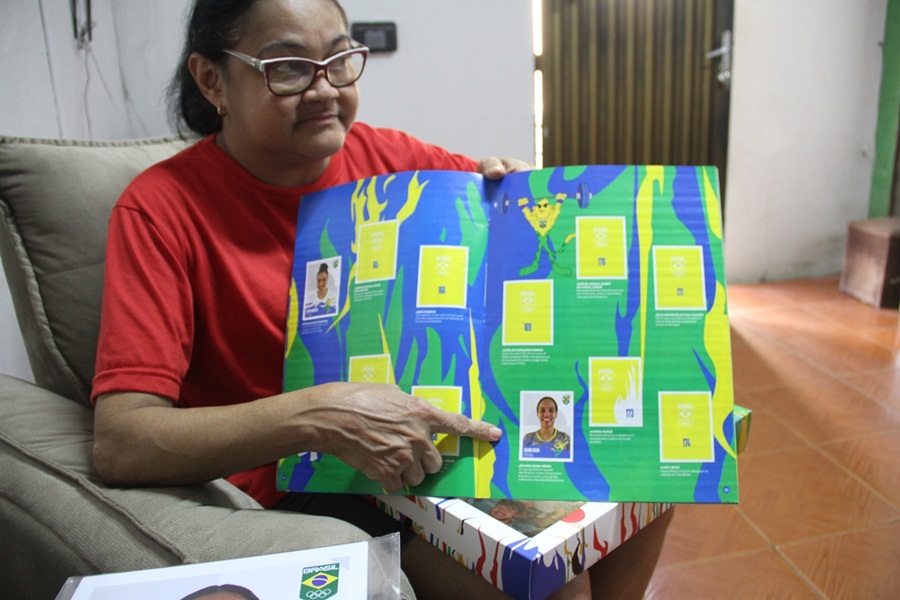 Mãe de Juliana, Joelma, mostra seu álbum de figurinhas com destaque para filha atleta | Foto: Arthur Cavalcante