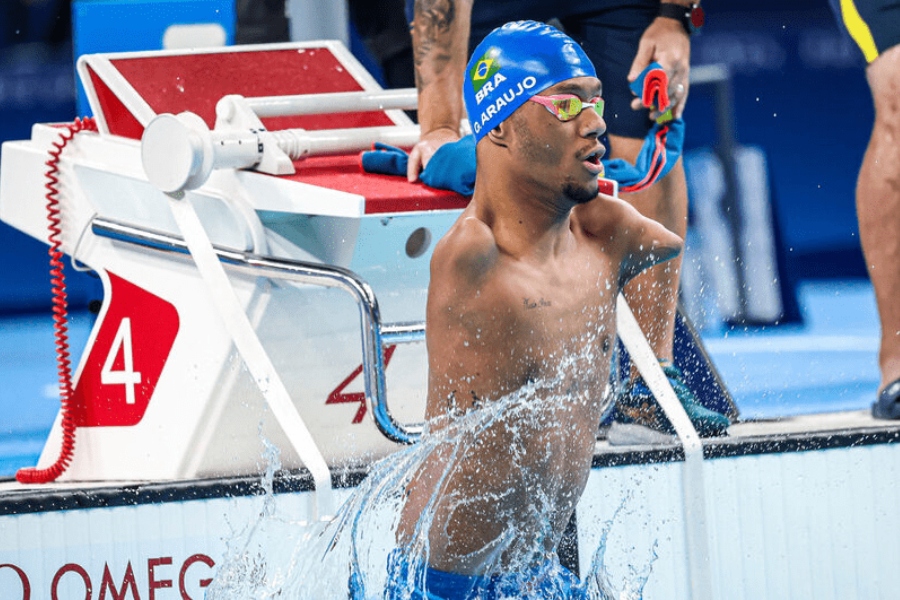 Gabriel Araújo continua fazendo história nas Paralimpíadas de Paris. Após conquistar seu segundo ouro nos 50m costas S2 neste sábado (31), o brasileiro garantiu vaga na final dos 150m medley da classe SM3 neste domingo, estabelecendo um novo recorde mundial na sua classe, SM2, com o tempo de 3min15s06.
