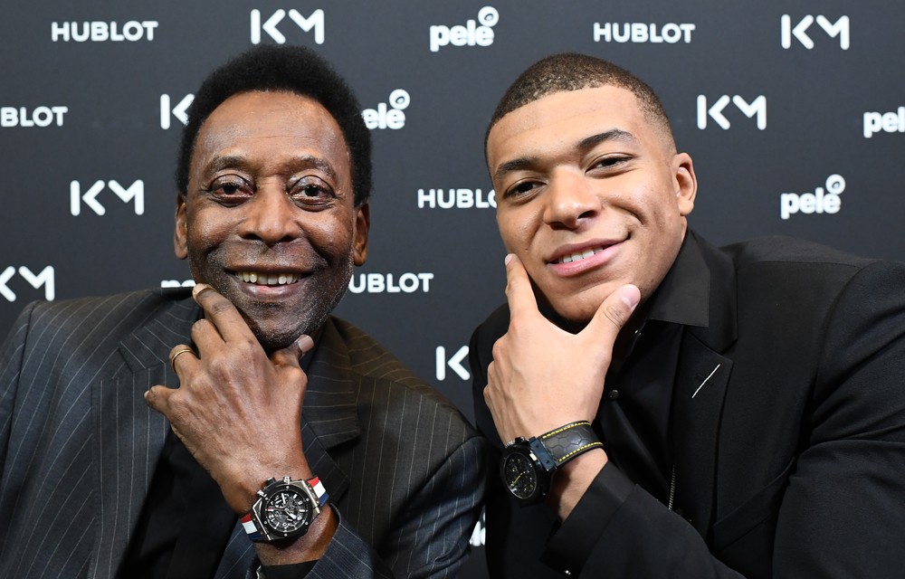 Pelé se encontrou com Mbappé ontem — Foto: AFP