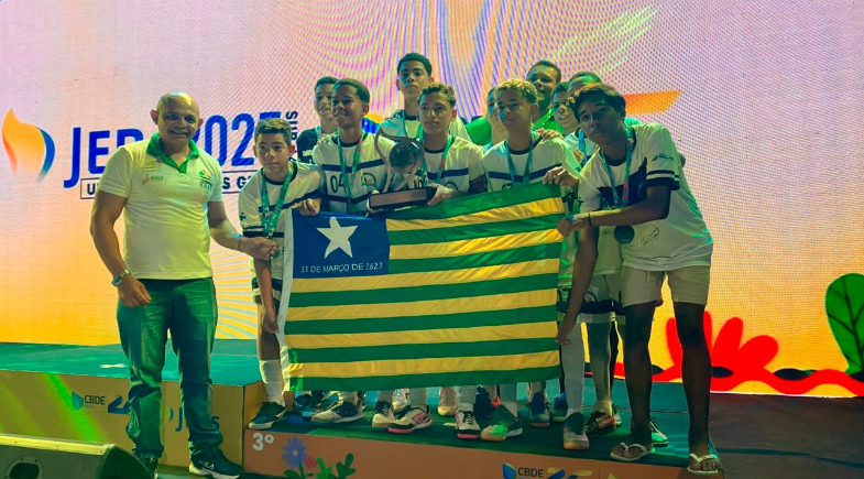 Neste domingo (12), o Piauí garantiu mais uma medalha nos Jogos Escolares Brasileiros (JEBs), realizados em Uberlândia, Minas Gerais. Dessa vez, a equipe de futsal masculino da Escola Municipal Álvaro Mendes, do município de Simplício Mendes, conquistou a medalha de bronze na série prata da competição.