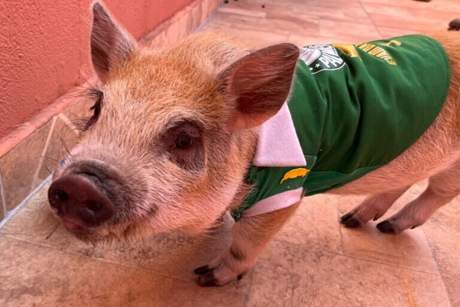 No entanto, Evair da Guia herdou o temperamento agitado do técnico Abel Ferreira. Assim como o treinador à beira do campo, o porquinho não para um minuto, explorando a espaçosa casa de Leandro em busca de algo para comer.