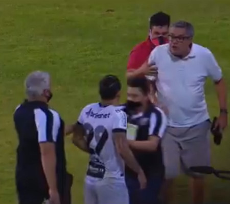 O presidente do Vitória/BA, Paulo Carneiro, invadiu o gramado do Estádio Barradão, no intervalo do duelo com o Ceará, válido pela terceira fase da Copa do Brasil na noite de quarta (26), para xingar e ameaçar o meia Vina, quando ele estava ao vivo numa entrevista para TV.