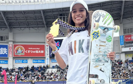A ‘fadinha’ Rayssa Leal que esteve pela primeira no pódio do X Games. Ela ficou com a medalha de ouro, na maior competição de esportes radicais do mundo.