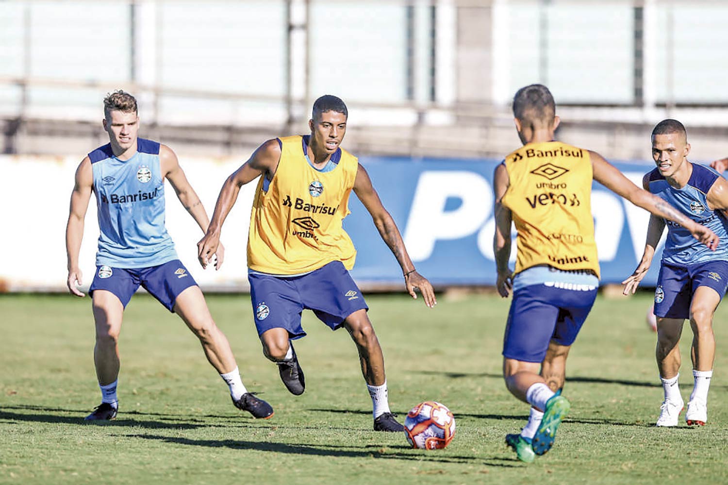 Depois de derrotar o Rosário Central por 3 a 1 pela Libertadores, o elenco do Grêmio retornou aos treinos nesta quinta-feira no CT Luiz Carvalho visando o jogo de domingo contra o Internacional, às 16h (horário de Brasília), no Estádio Beira-Rio, pela primeira partida da final do Campeonato Gaúcho.