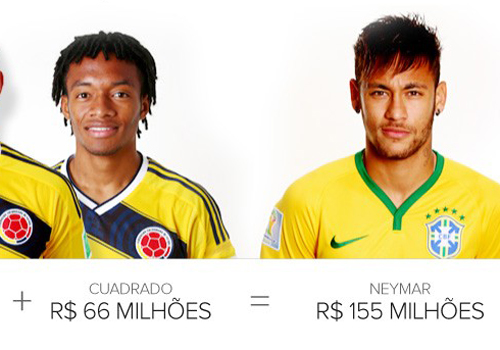 De um lado, o Brasil, considerado um dos grandes favoritos ao título da Copa e que tem em Neymar a sua principal estrela. Do outro, a Colômbia, uma surpresa e que tem em James Rodríguez seu grande craque (veja vídeo ao lado). Rivais em duelo válido pelas quartas de final na próxima sexta-feira, no estádio Castelão, em Fortaleza, as duas equipes vivem momentos parecidos dentro das quatro linhas. Ambas ficaram em primeiro na fase de classificação e avançaram no primeiro duelo eliminatório. Mas, ao analisarmos o lado financeiro, existe uma grande diferença entre os rivais sul-americanos.