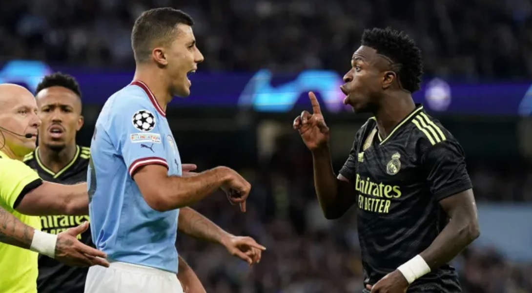 Rodri e Vini batem boca em partida | (Foto: IMAGO / Sportimage)