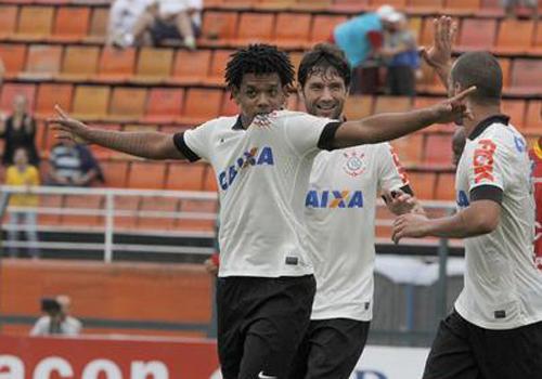 Romarinho marcou os três gols do Corinthians no Pacaembu | Foto: Agência Lance