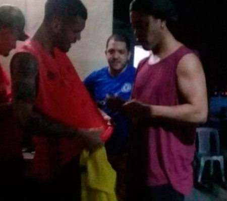 Ronaldinho Gaúcho autografa camisa do Flamengo em presídio