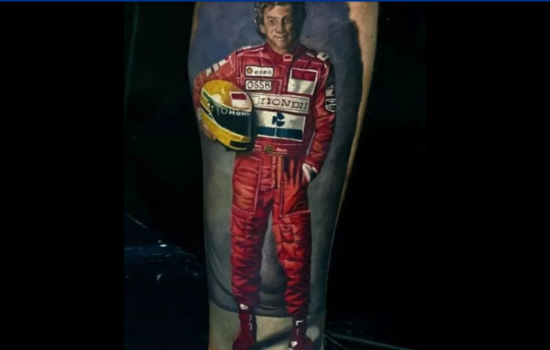 O piloto de Fórmula 1 morreu em 1994 em um trágico acidente durante uma corrida e colocar a imagem de Ayrton Senna na perna foi uma forma de eternizar o ídolo.