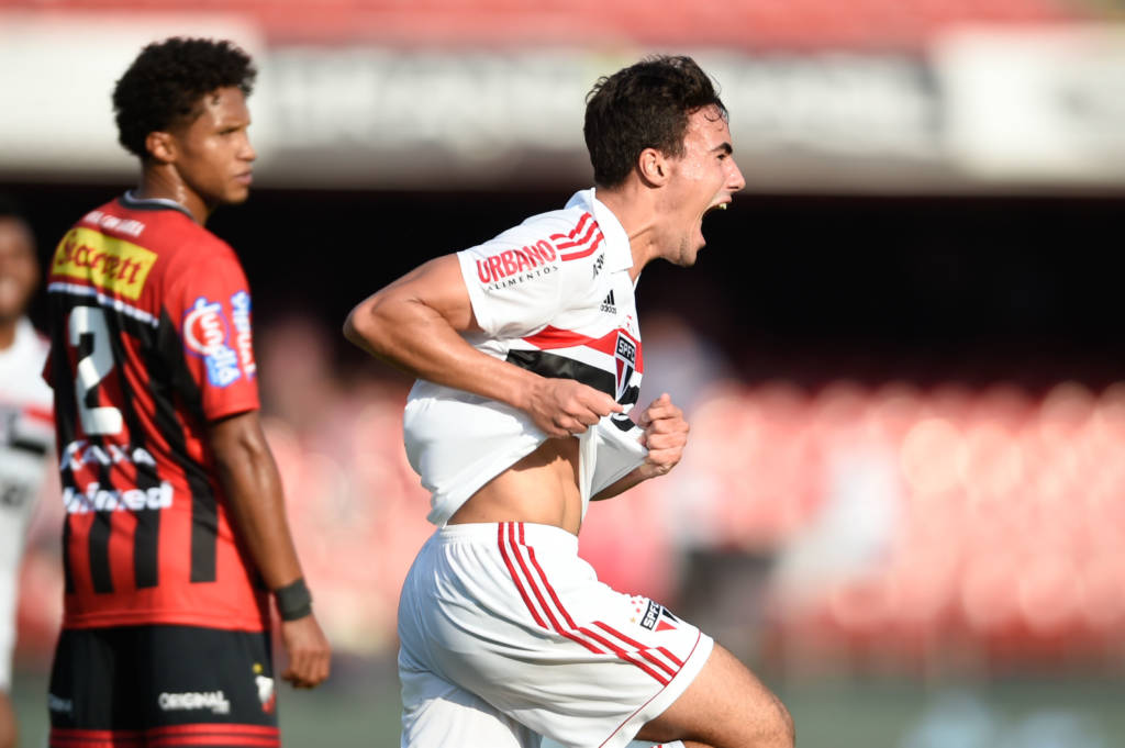 Apesar de pecar nos arremates, o São Paulo, de tanto insistir, foi premiado com o gol aos 33 minutos de jogo. Everton Felipe fez boa trama pela esquerda e tocou para Reinaldo, que cruzou na medida para Igor Gomes, no meio da área, concluir com um belo chute no ar, abrindo o marcador no Morumbi. Não satisfeito com a vantagem o Tricolor ainda teve uma chance de ouro para ir para o intervalo com 2 a 0, mas Everton Felipe, que saiu cara a cara com o goleiro após tabelar com o autor do primeiro gol, não finalizou bem.