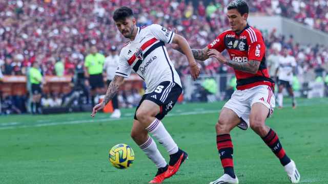 O São Paulo dominou o primeiro tempo. Desde o início da partida, a equipe comandada por Dorival Júnior buscou manter a posse de bola e atacar o Flamengo de maneira organizada, sem se expor. Foi essa abordagem mais cautelosa que criou perigo para a defesa rubro-negra.