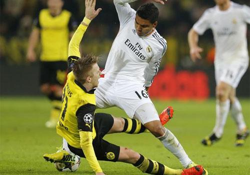Com problemas físicos, Cristiano Ronaldo ficou no banco do Real, e sua falta foi sentida. Sem o português, a equipe espanhola perdeu um pênalti com Angel Di María e foi dominada pelo Borussia Dortmund, que abriu vantagem no primeiro tempo com dois gols de Marco Reus. A etapa complementar viu muita pressão da equipe alemã, mas Iker Casillas acabou sendo decisivo para garantir a vaga.