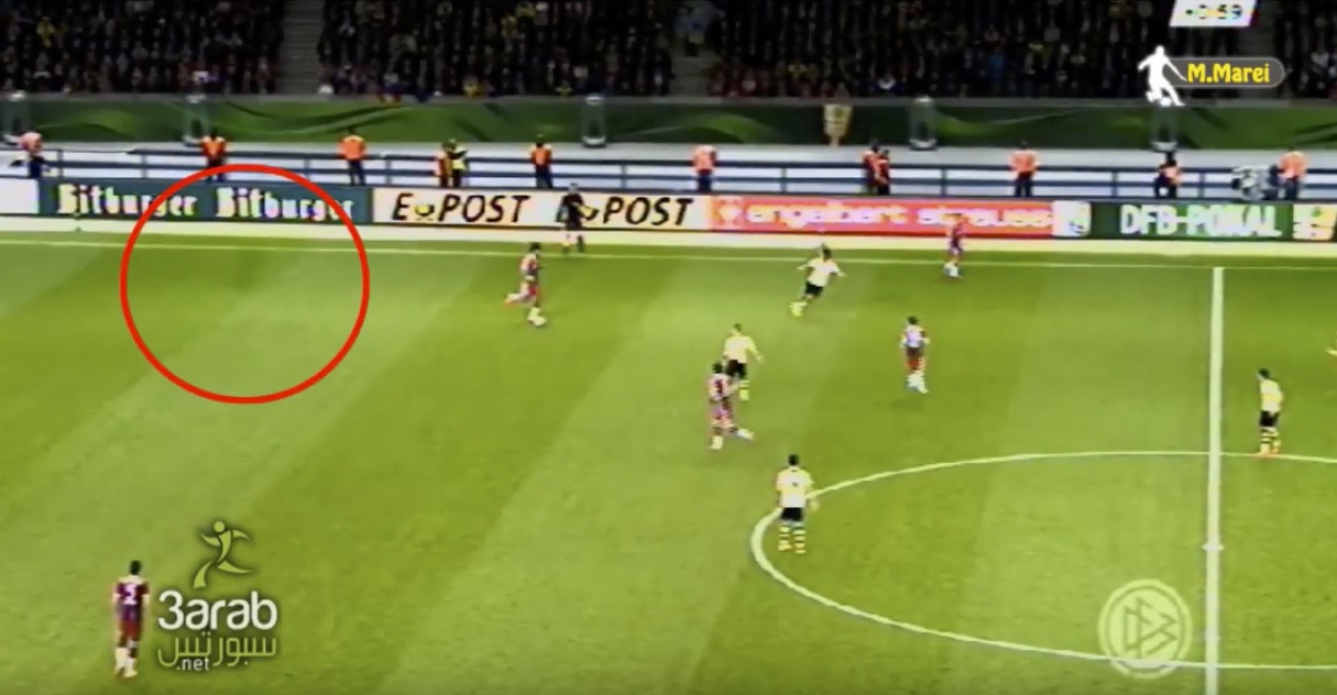 A situação tratada aqui é da partida entre Bayern de Munique e Borussia Dortmund, que foi um pouco ofuscada por uma figura fantasmagórica que atravessava o campo. A “alma penada" parece surgir do nada e se move da esquerda para a direita.