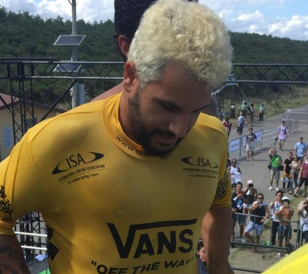 Ítalo sequer aguardou suas pranchas desembarcarem, seguindo do aeroporto direto para o local do evento. Pegou uma prancha emprestada por Filipe Toledo, vestiu a lycra e, de bermuda jeans, correu para o mar.