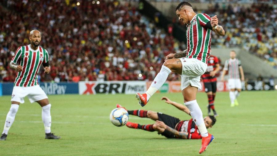 O primeiro bom lance do Fluminense ocorreu apenas aos 14min do segundo tempo. O Flamengo tentou jogada de ataque e perdeu a bola após passe errado de Renê. Everaldo recebeu no meio de campo e deu arrancada muito veloz até servir Yony González, que chutou firme para defesa de Diego Alves.