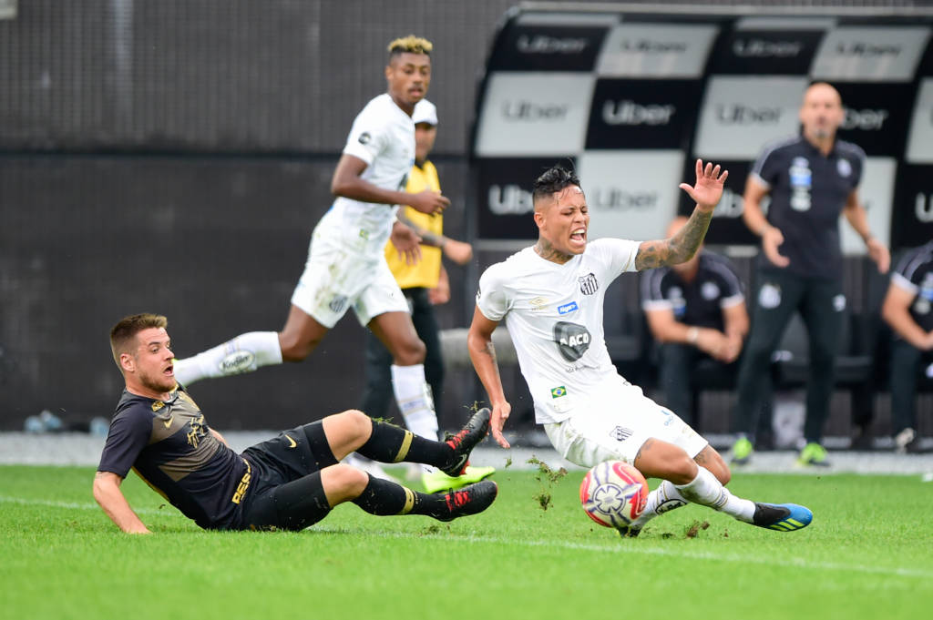 O Peixe detinha mais posse de bola, rodava a bola, mas pecava nos passes mais agudos. Em um dos contra-ataques corintianos, Jadson deixou Gustagol na cara de Vanderlei. Victor Ferraz cometeu falta e atrasou a jogada.