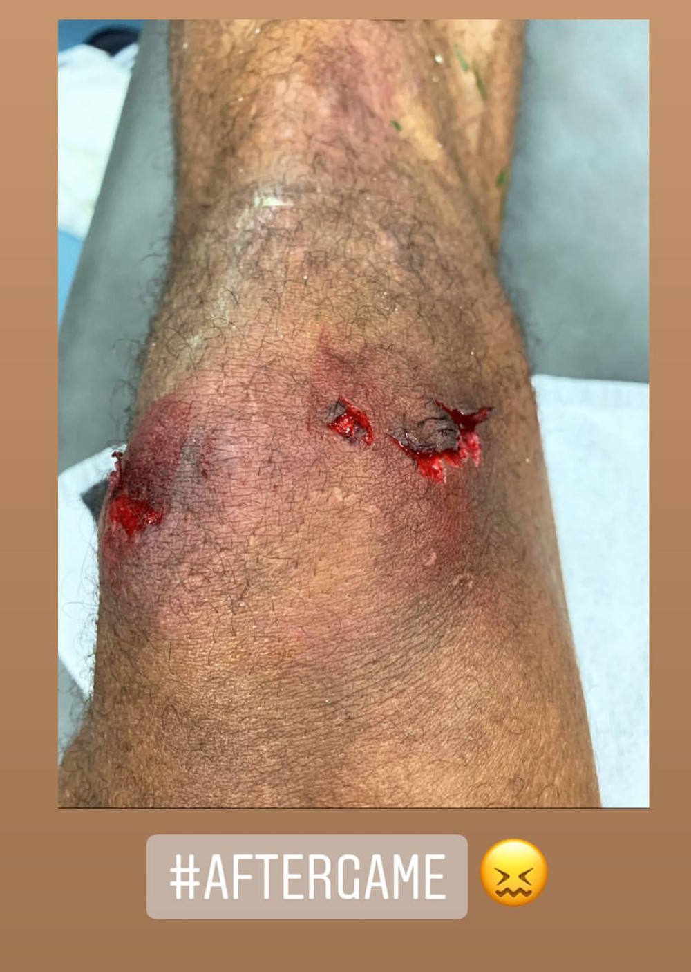 O próprio francês postou a imagem do joelho machucado nas redes sociais, talvez numa tentativa de aliviar as críticas após a eliminação para o maior rival.