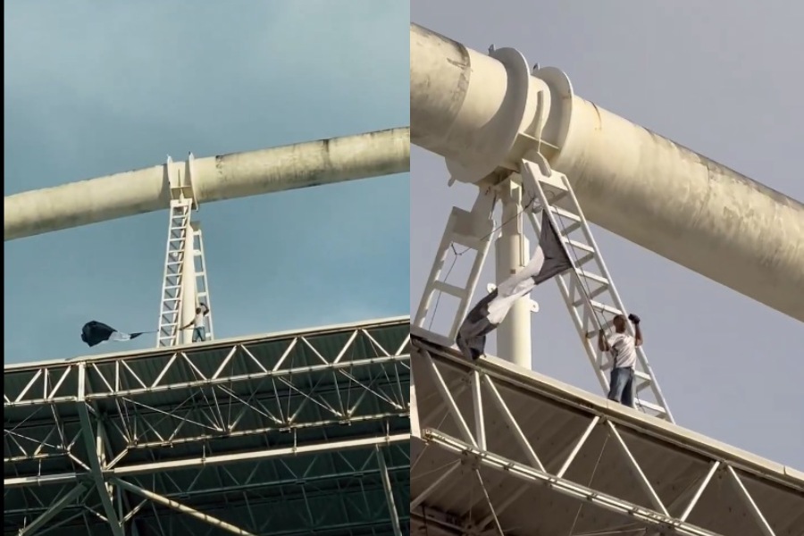 O Botafogo ainda vive em êxtase desde o último sábado (30). Mais de 50 mil torcedores estiveram presentes na Fan Fest do Nilton Santos, onde assistiram também o clube conquista a América com o título da Libertadores. No meio da multidão, um botafoguense chamou a atenção ao balançar sua bandeira no teto do estádio.