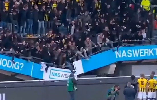 Torcedores do Vitesse passaram por um grande susto no último domingo, 17 de outubro. Após derrotar o Nijmegen por 1 a 0, pela nona rodada o Campeonato Holândes, os jogadores se dirigiram até a arquibancada para comemorar. Enquanto os fãs cantavam e pulavam, parte da arquibancada do estádio Goffertstadion desabou. Felizmente não há registros de feridos.